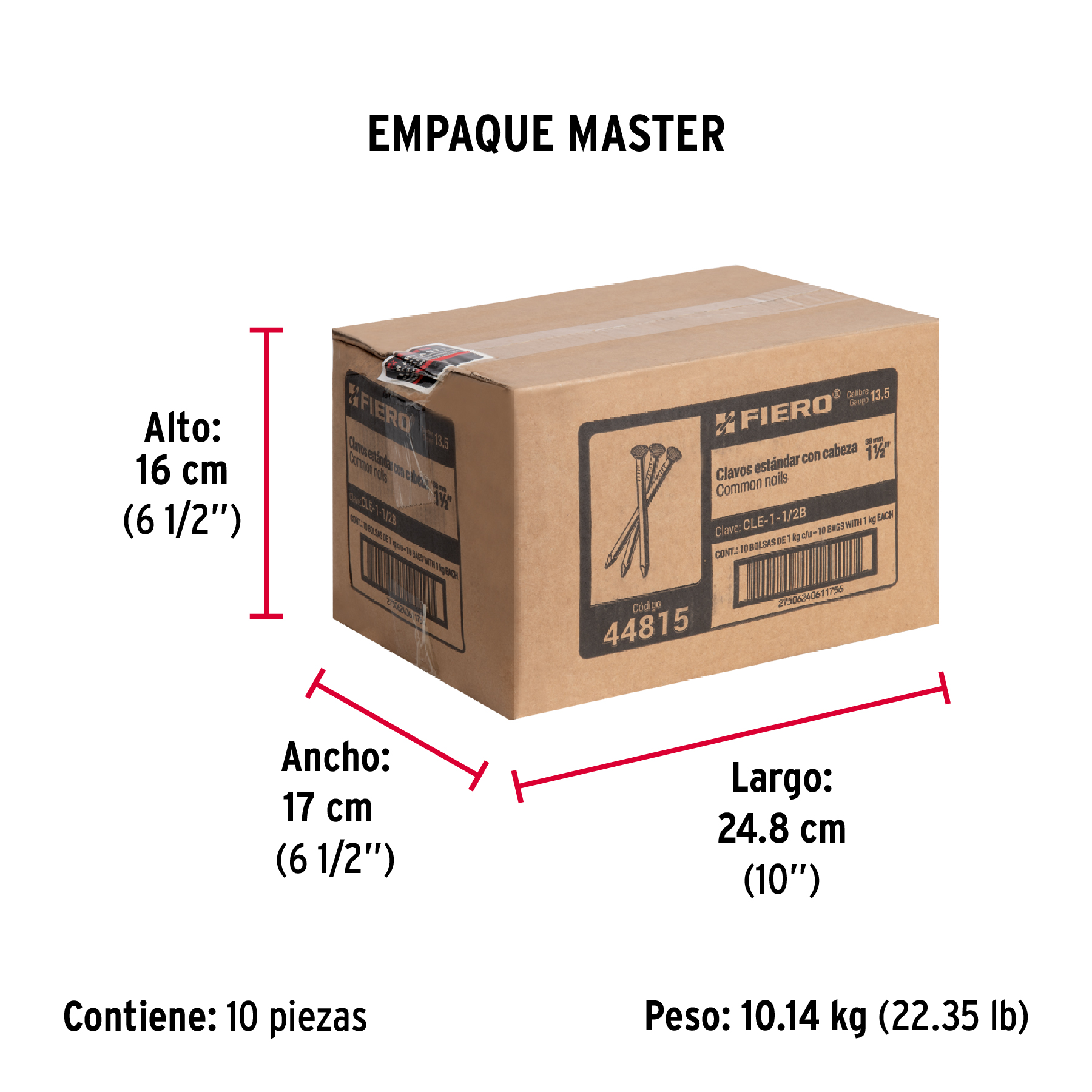 Bolsa con 1 kg de clavo estándar 1-1/2″ con cabeza, FIERO 44815