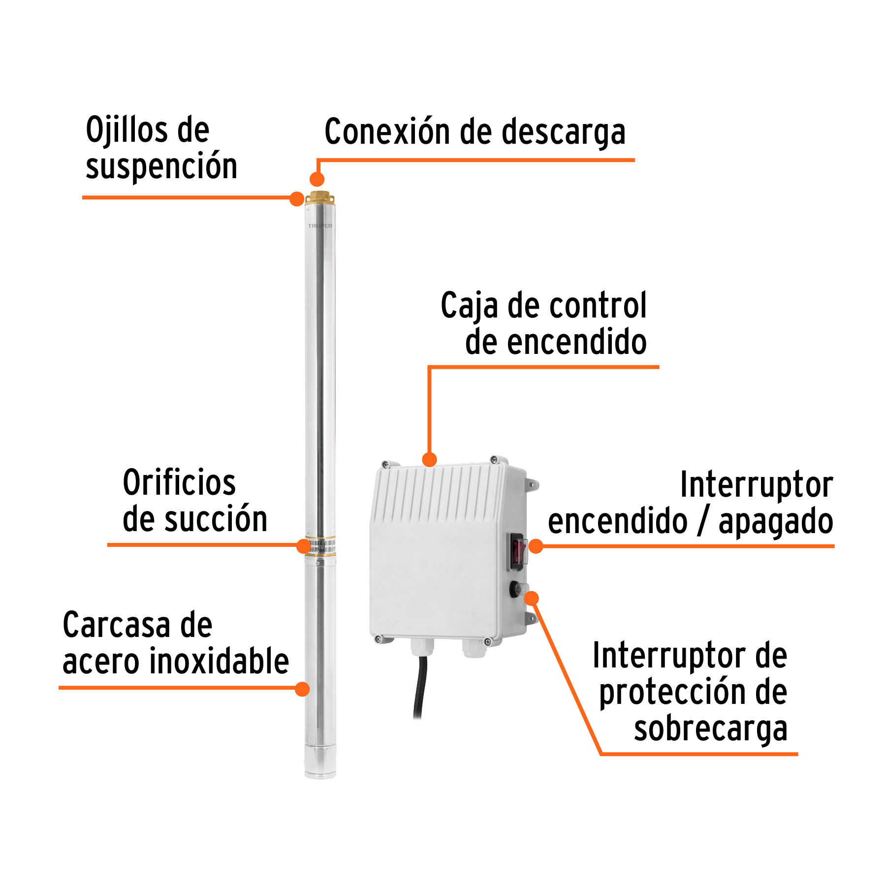 Bomba sumergible tipo bala, 5-1/2HP, agrícola, 220V, TRUPER 102979