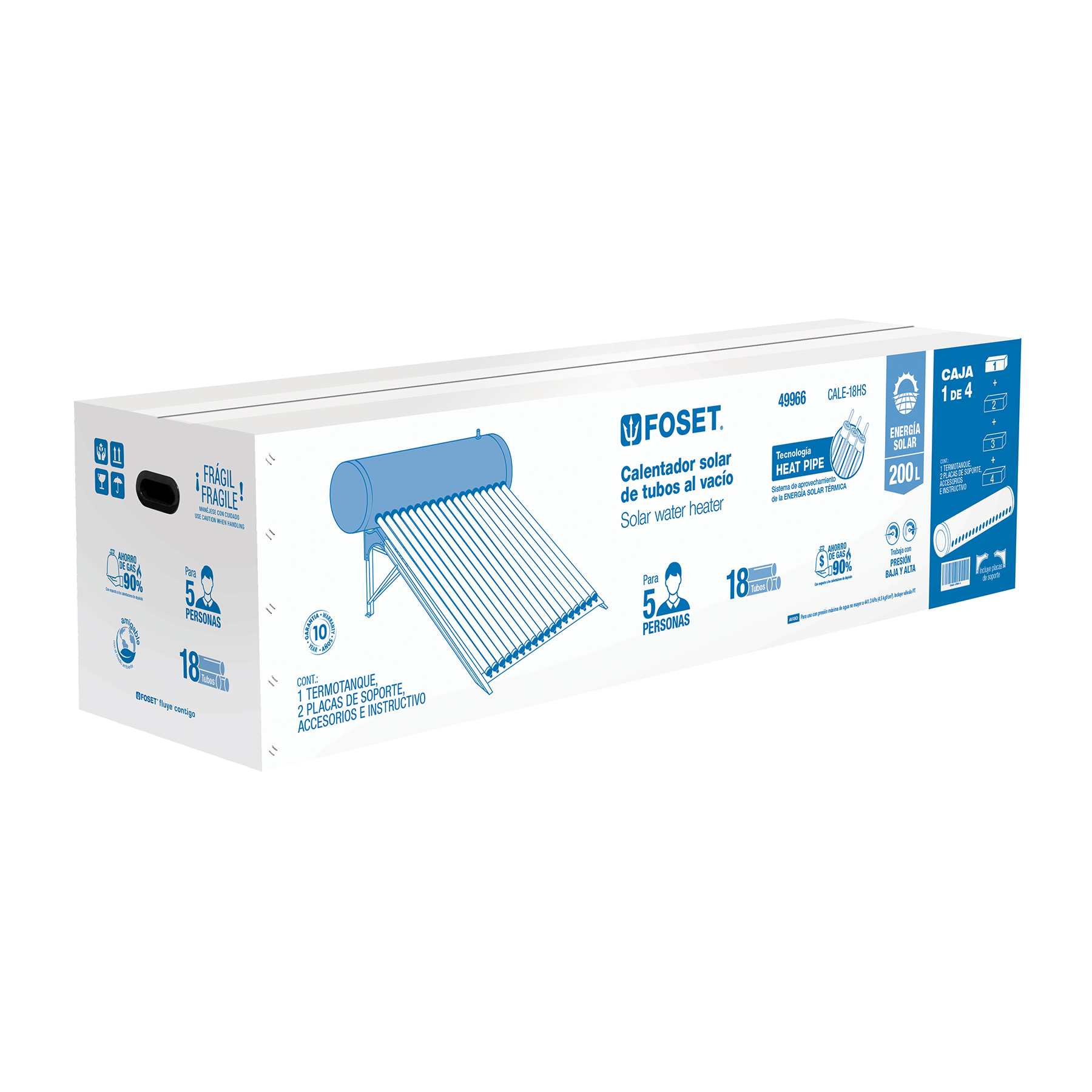 Calentador solar HeatPipe, 18 tubos, 200L, 5 personas, Foset 49966