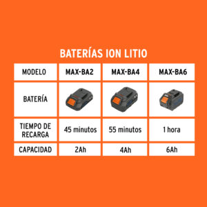 MAX-BA2 (45 minutos), MAX-BA4 (55 minutos) y MAX-BA6 (1 hora) |
