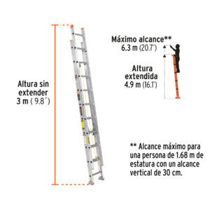 Escalera de extensión, tipo II, 20 peldaños, Truper 16758