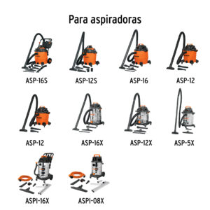 Para aspiradoras modelos ASP-16S, ASP-12S, ASPI-16 (Descontinuada), ASPI-12 (Descontinuada), ASP-16, ASP-12, ASP-16X, ASP-12X, ASP-5X, ASPI-16X (Descontinuada) y ASPI-08X (Descontinuada) marca Truper®