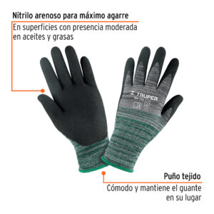 Guantes de nylon recubiertos de nitrilo arenoso, XG, Truper 103869