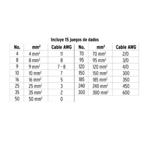 • Crimpa cables de batería, soldadura, cables de alimentación y eléctricos de 12 AWG a 600 MCM