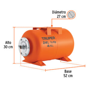 Tanque hidroneumático horizontal, 24 litros, TRUPER 13593