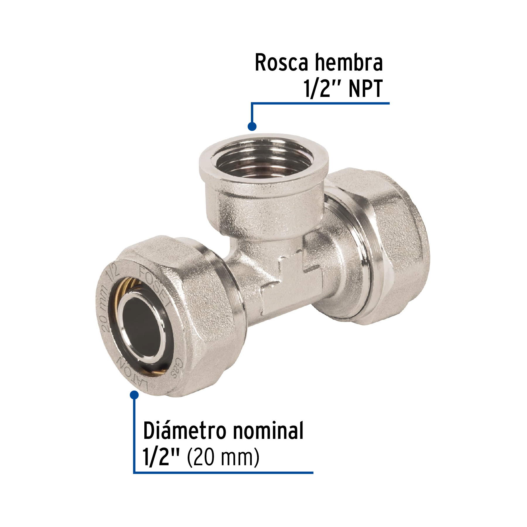 Tee para PEALPE, 1/2″, con rosca hembra central, FOSET 45930