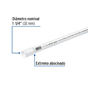 Tubo de 1-1/4″ PVC hidráulico cédula 40, 3m, 1.9kg, FOSET 45520